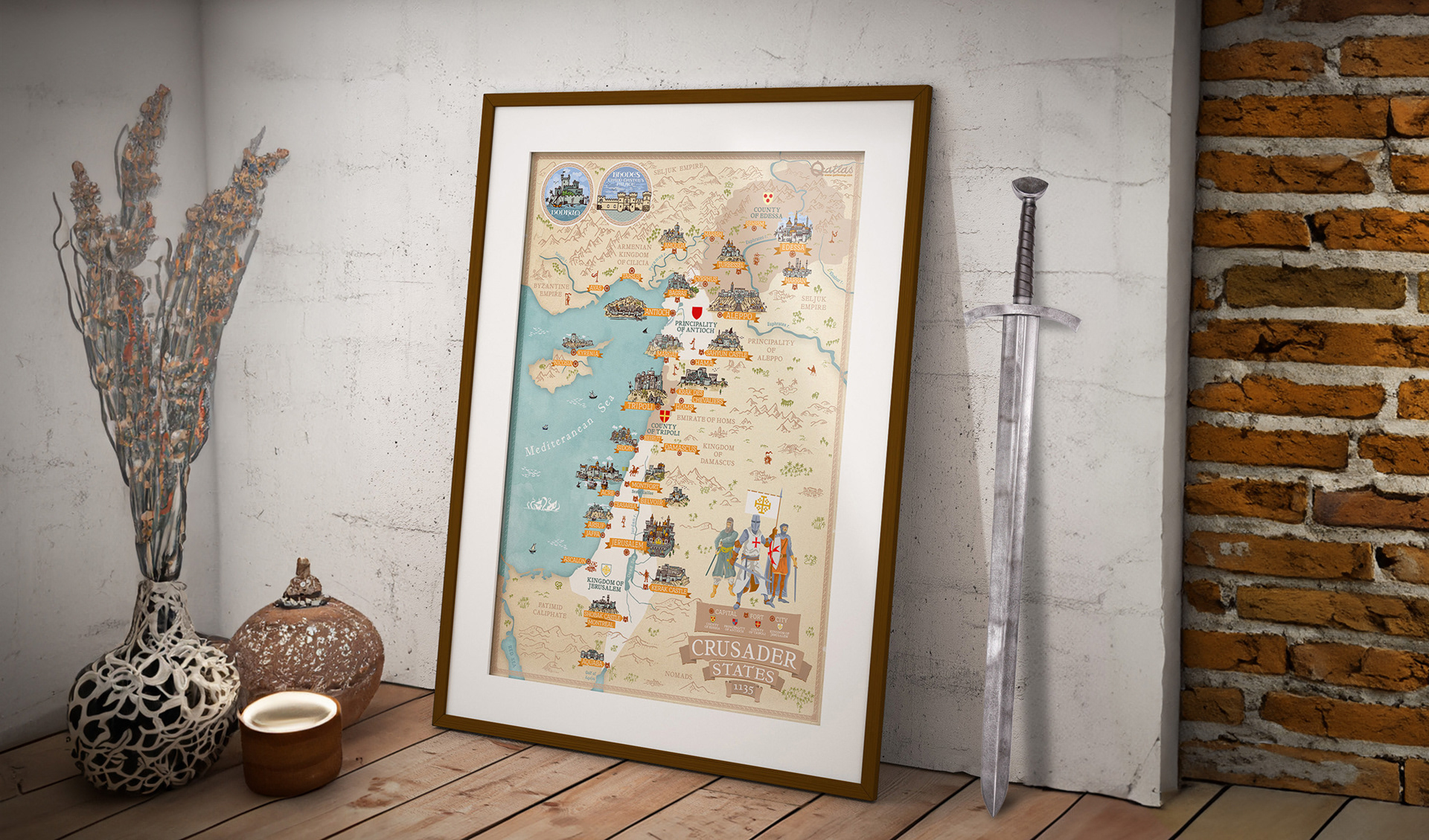 Step into the medieval world with my hand-drawn fantasy-styled historical map of the Crusader States in 1135 AD! This map blends real history with artistic interpretation, aiming to capture the spirit of the 12th century.